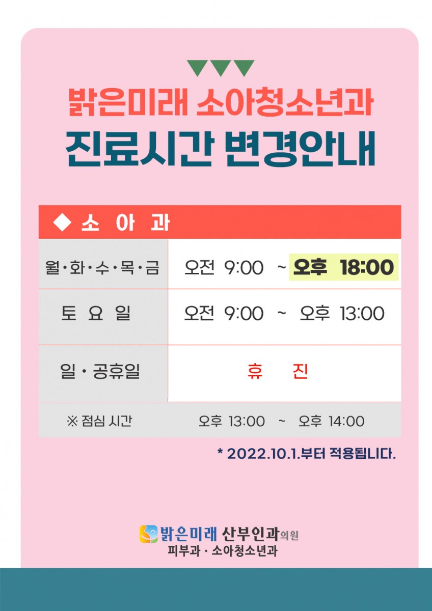 [밝은미래] 소아청소년과 진료시간 변경안내